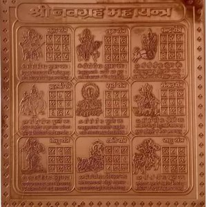 Navagraha Yantra eliminates the malefic effects of turbulent planets. Establishing this yantra brings happiness, prosperity and prosperity in life. This device decreases the adverse effects of planets and increases their favorable effects.
